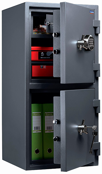 Огне-Взломостойкие сейфы: Оптимальный выбор для хранения крупных сумм наличных, деловых бумаг, важных документов дома или в офисе. Сочетание свойств огнеупорности и устойчивости к взлому позволяет защитить ценности одновременно от пожара и кражи.