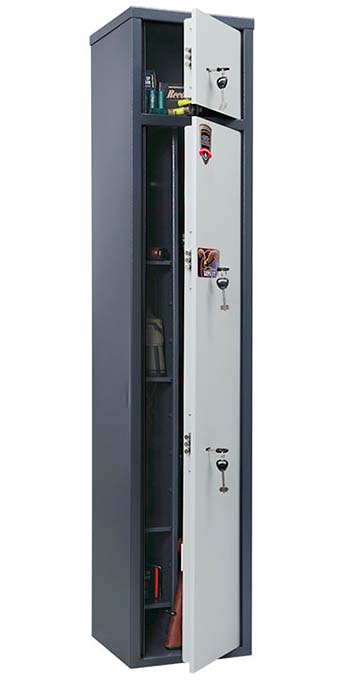 Оружейные сейфы и шкафы: Для частных лиц и организаций, владеющих гражданским или служебным оружием, покупка оружейного сейфа — необходимость, продиктованная требованиями закона. Ст. 59 Постановления правительства РФ 814 от 21 июля 1998 г регламентирует место хранения оружия и патронов: «Принадлежащие гражданам Российской Федерации оружие и патроны должны храниться по месту их жительства с соблюдением условий, обеспечивающих их сохранность, безопасность хранения и исключающих доступ к ним посторонних лиц, в запирающихся на замок (замки) сейфах, сейфовых шкафах или металлических шкафах для хранения оружия.