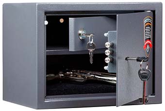 Сейфы для хранения пистолетов: Для частных лиц и организаций, владеющих гражданским или служебным оружием, покупка оружейного сейфа — необходимость, продиктованная требованиями закона. Ст. 59 Постановления правительства РФ 814 от 21 июля 1998 г регламентирует место хранения оружия и патронов: «Принадлежащие гражданам Российской Федерации оружие и патроны должны храниться по месту их жительства с соблюдением условий, обеспечивающих их сохранность, безопасность хранения и исключающих доступ к ним посторонних лиц, в запирающихся на замок (замки) сейфах, сейфовых шкафах или металлических шкафах для хранения оружия.